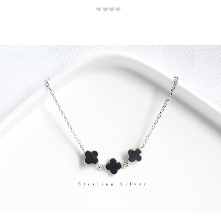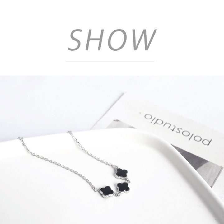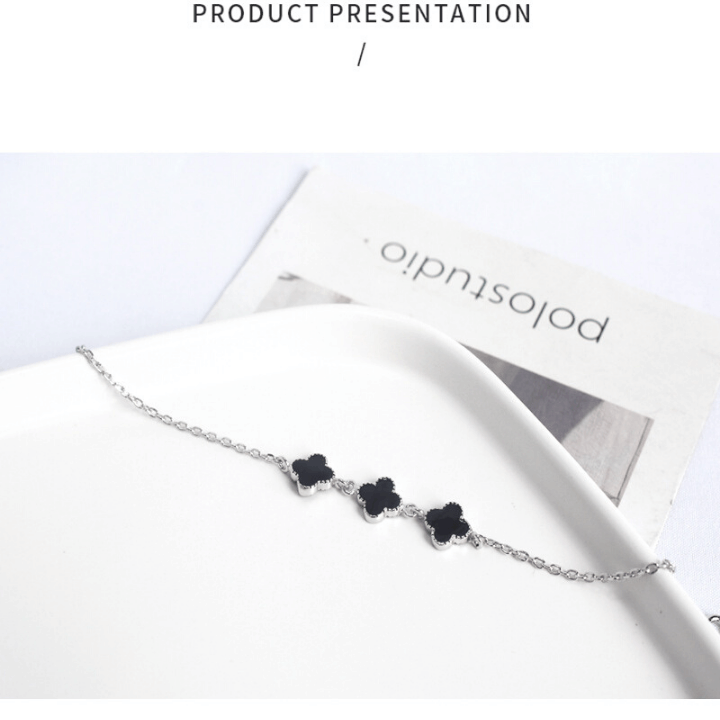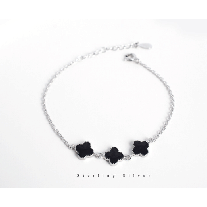 925 Sterling Silver Shinning Bracelet For Women With Black Clover Shape